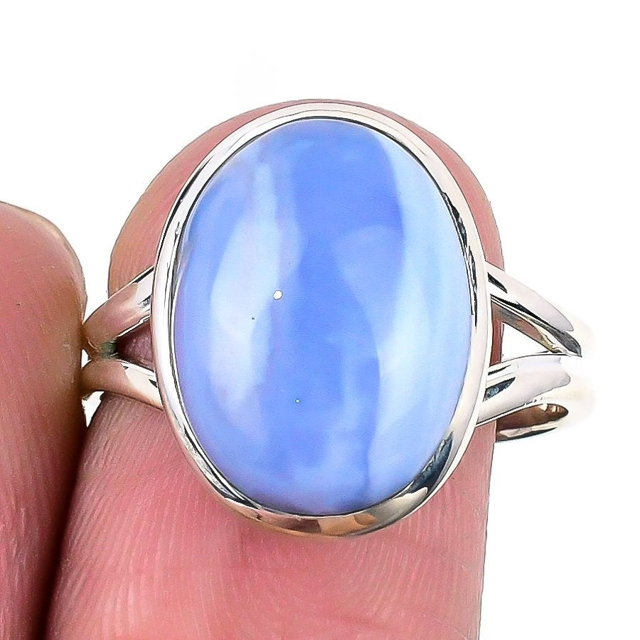 Natural Blue Lace Agate Sterling Silver Wife Wedding Statement Ring Jewelry US 9