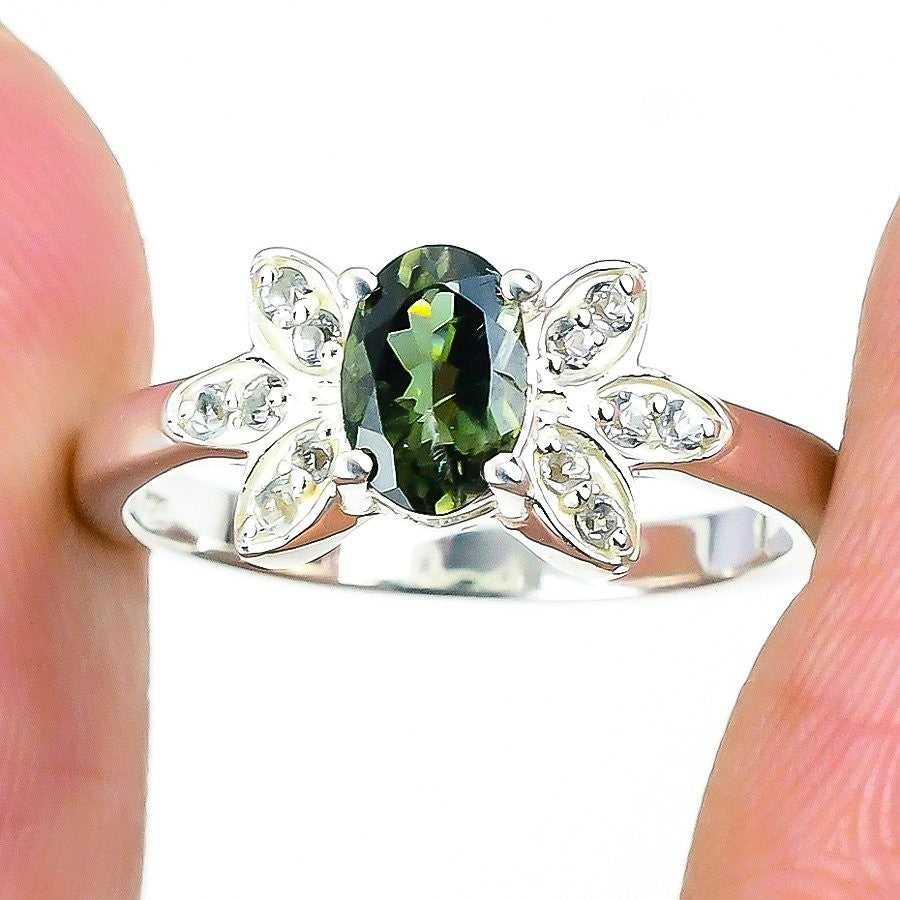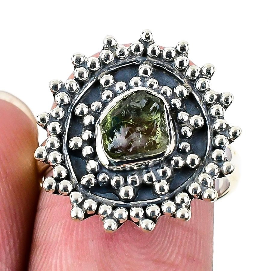 Moldavite Gemstone Solid Silver Anniversary Statement Trendy Ring Jewelry US 7.5