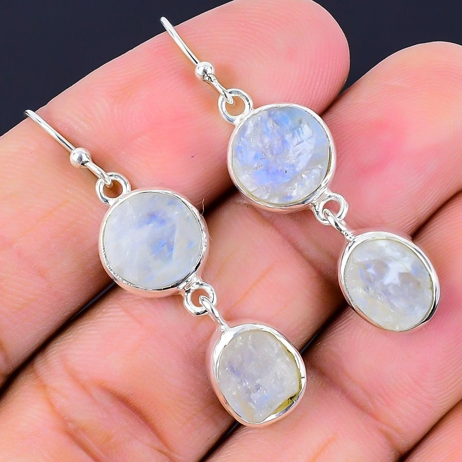 Rainbow Moonstone Gemstone 925 Sterling Silver Dangling Crown Chakra Earrings