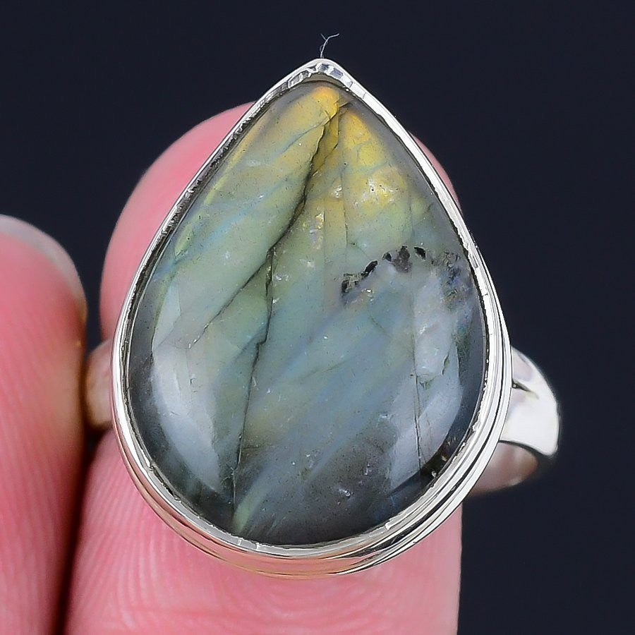 Natural Labradorite 925 Silver Statement Third Eye Chakra Ring Jewelry Size 6.5
