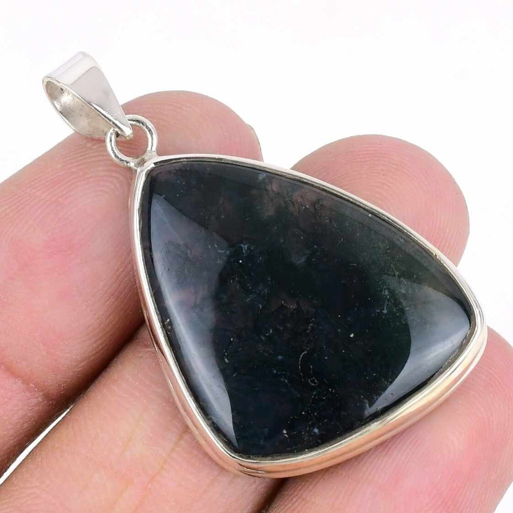Mothers day Sale green Moss Agate Stone 925 Solid Silver Sister Birthday Pendant