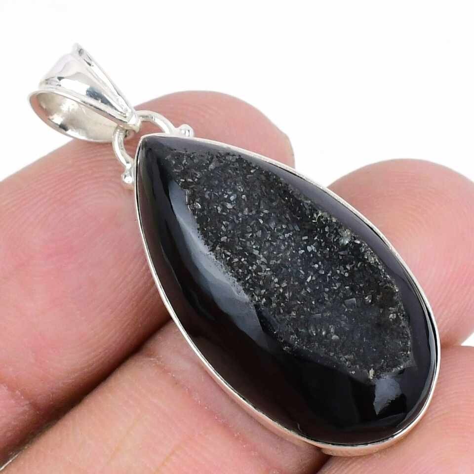 Black Onyx Druzy Stone 925 Silver Wedding Trendy Daughter Boho Pendant Jewelry