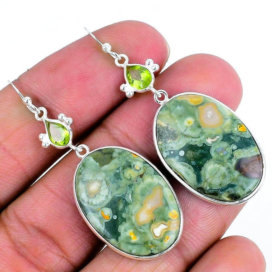 Ocean Jasper Stone Solid Sterling Silver Mothers day Boho Dangle Drop Earrings