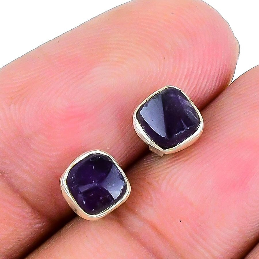 Crown Chakra Natural Sage Amethyst 925 Sterling Silver Stud Butterfly Earrings