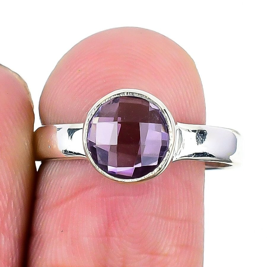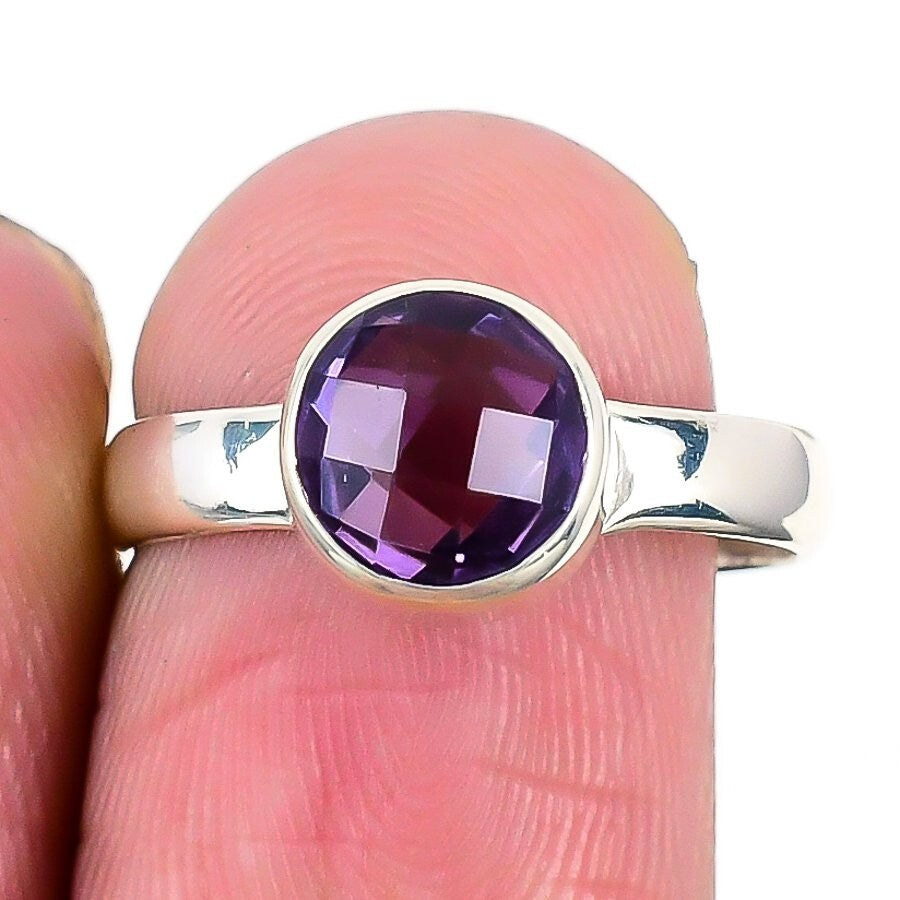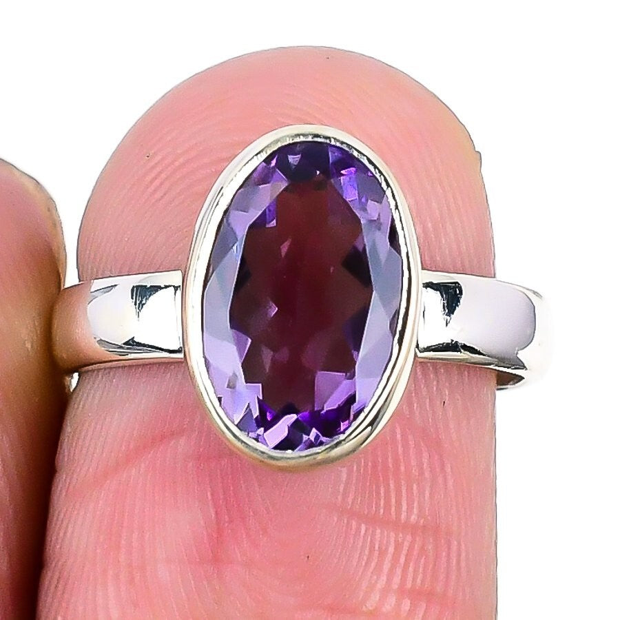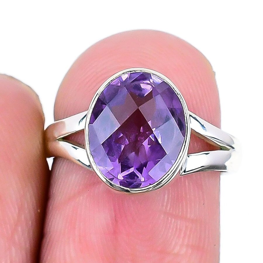 Mothers day Deal February Amethyst Gemstone Sterling Silver Cluster Ring Size 8