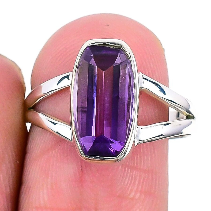 Natural Amethyst Solid Sterling Silver Mothers day Cluster Ring Jewelry Size 8.5
