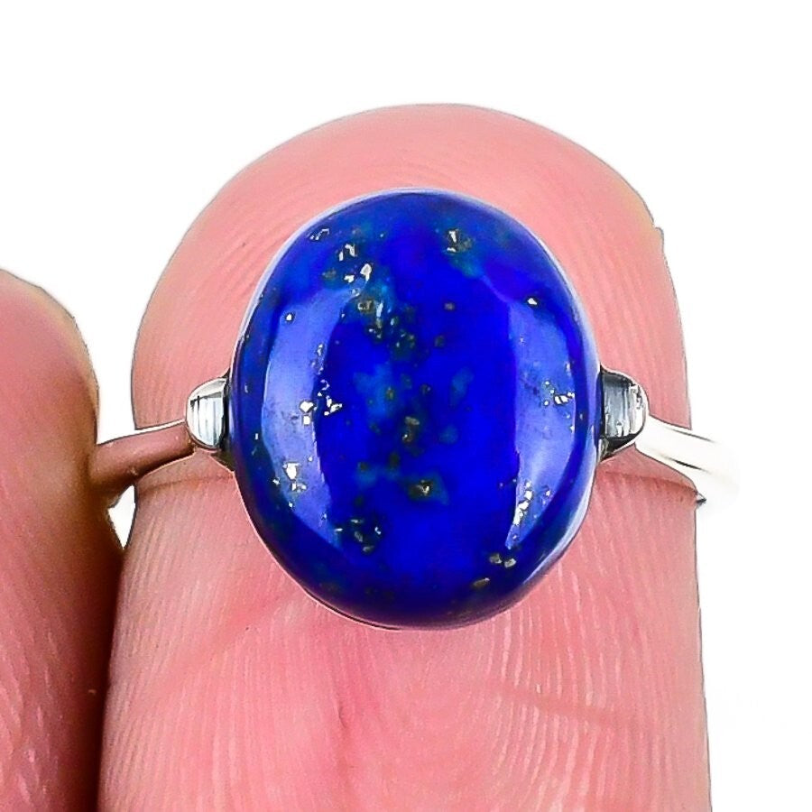 Natural Lapis Lazuli Sterling Silver Cluster Boho Wedding Ring Jewelry Size 5.5