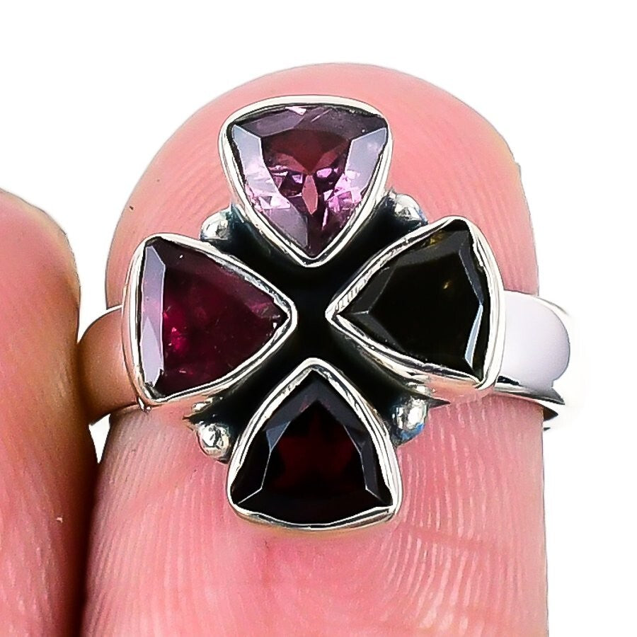 Tourmaline Stone 925 Silver Anniversary Cluster Root Chakra Ring Jewelry Size 6