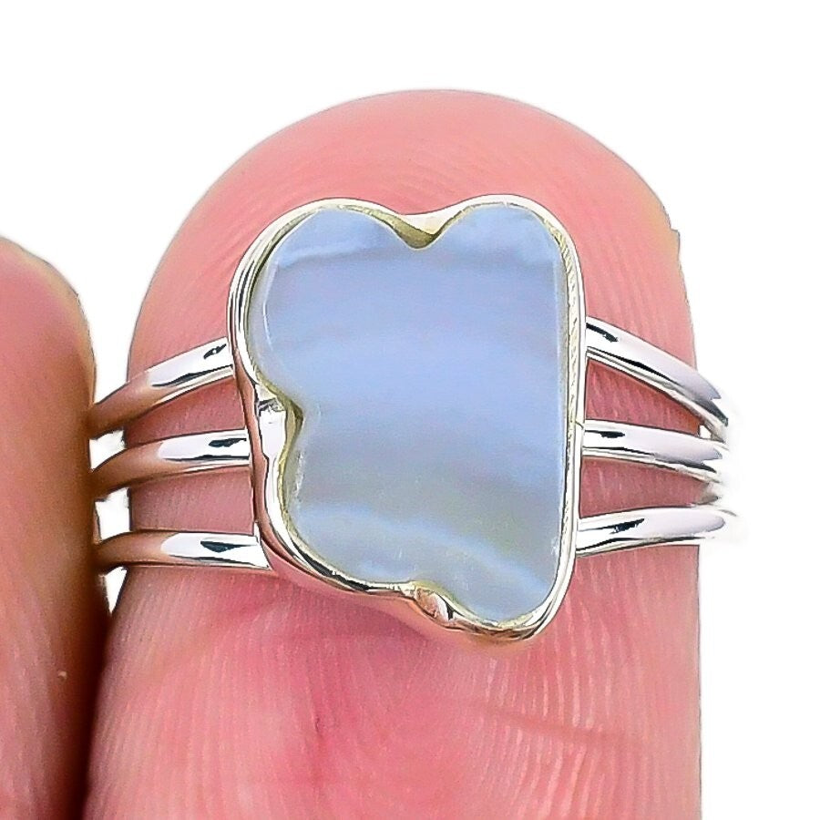 Natural Bluelace agate 925 Sterling Silver Cluster Mothers Gift Wife Ring Size 6