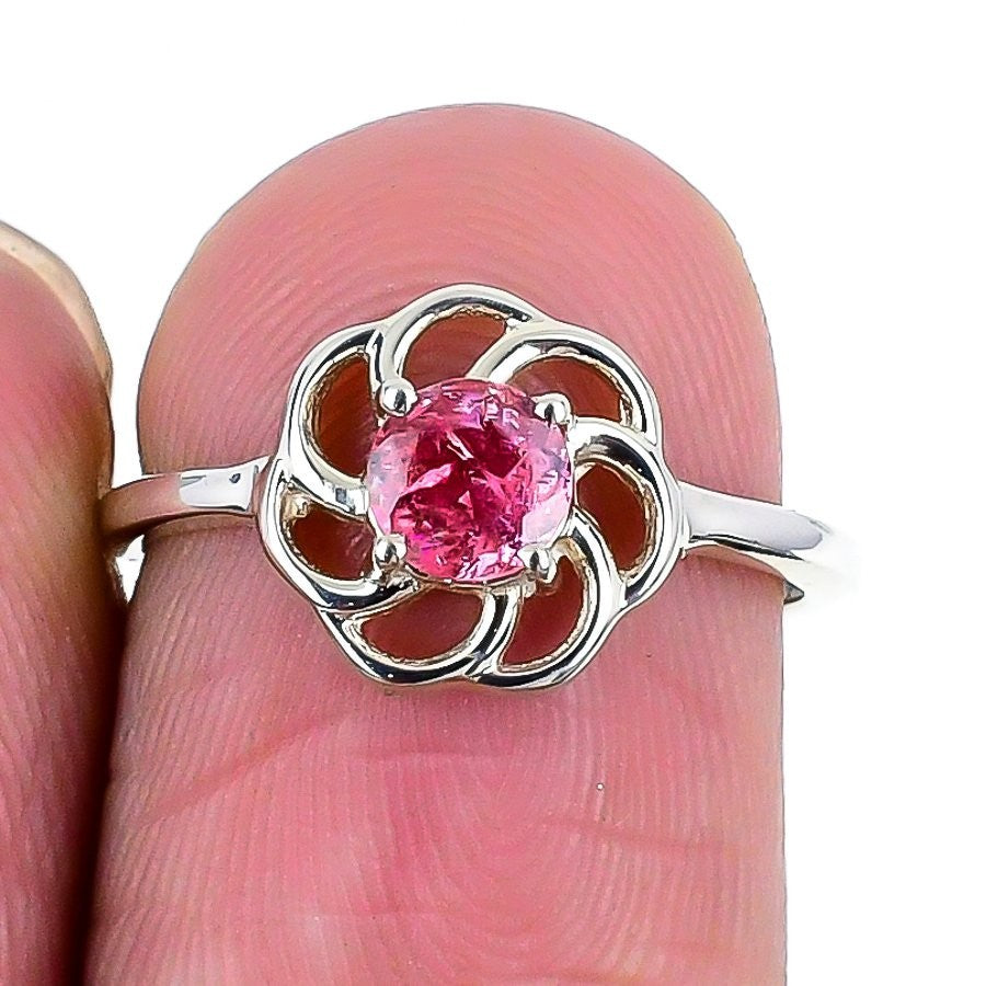 Pink Tourmaline Gemstone Solid Silver Trendy Statement Handcrafted New Ring US 6