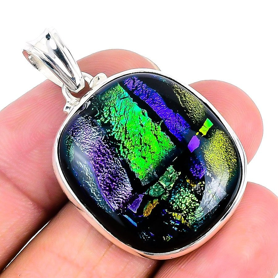 Mexican Dico Glass Stone Solid Sterling Silver Unique Birthday Pendant Jewelry