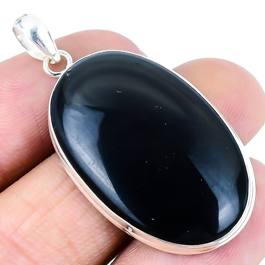 Natural Obsidian Eye Anniversary Birthday Pendant Jewelry Solid Sterling Silver