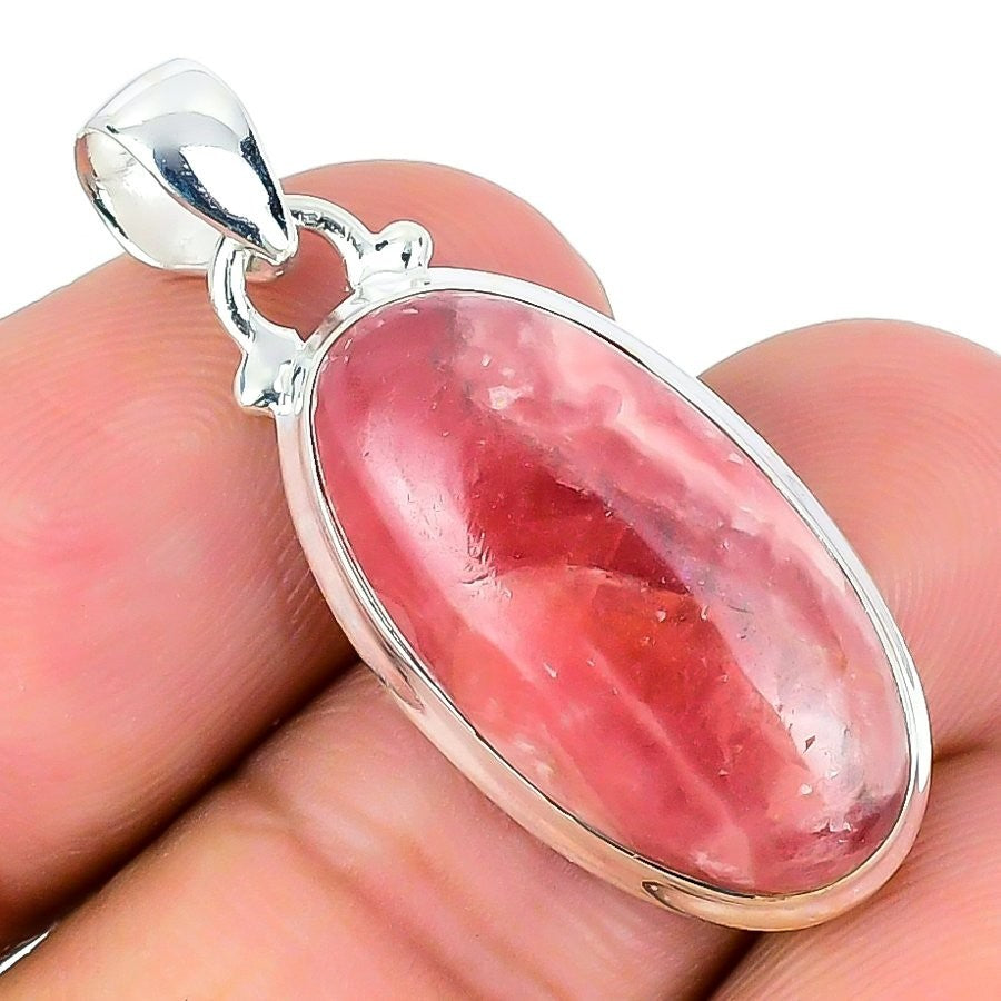 Rhodochrosite Stone Solid Sterling Silver Wedding Heart Chakra Birthday Pendant