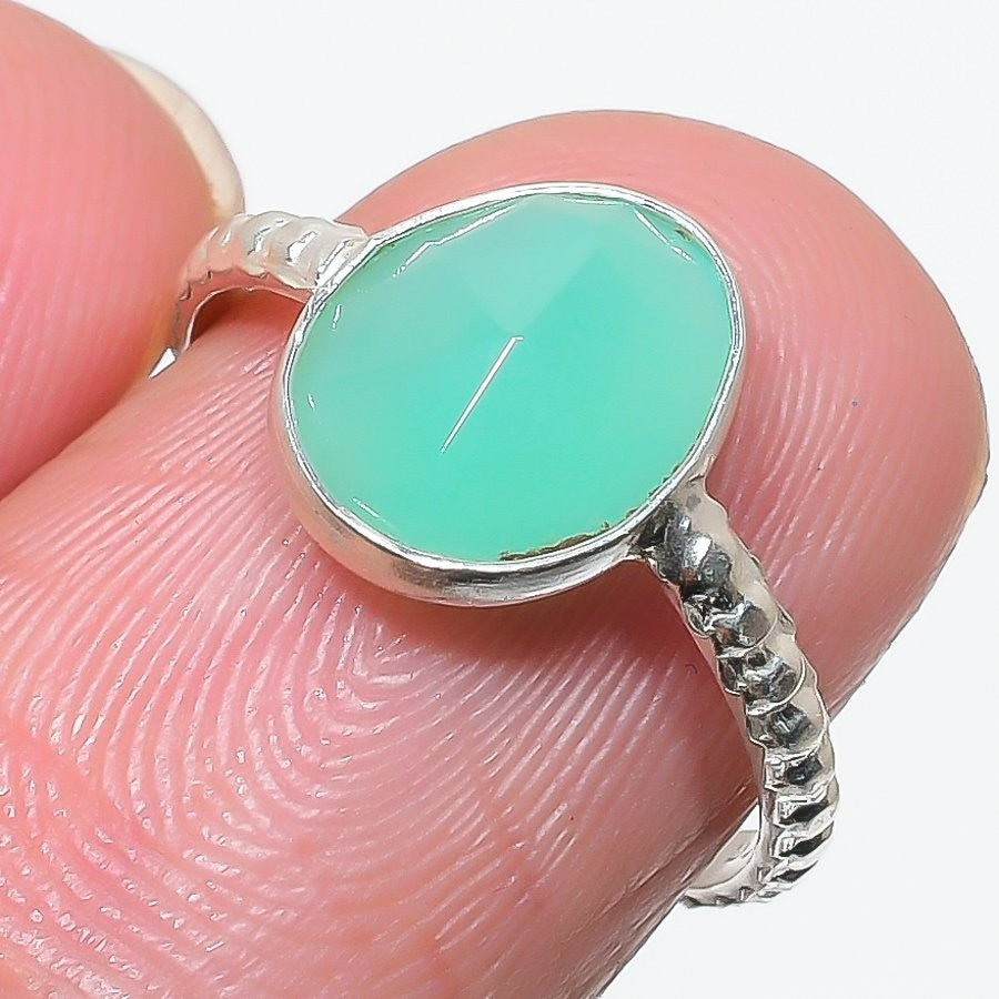 Natural Green Chalcedony Sterling Silver Wedding Sister Boho Cluster Ring Size 7