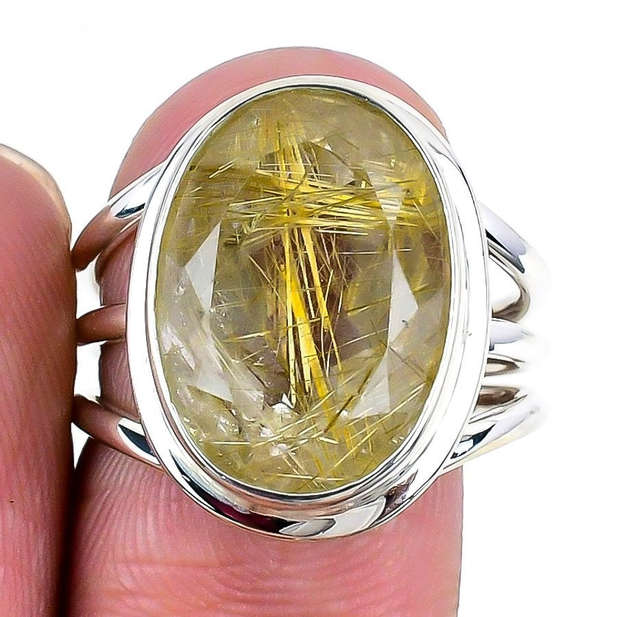 Natural Golden Rutile Faceted 925 Sterling Silver Statement Ring Jewelry US 8.5