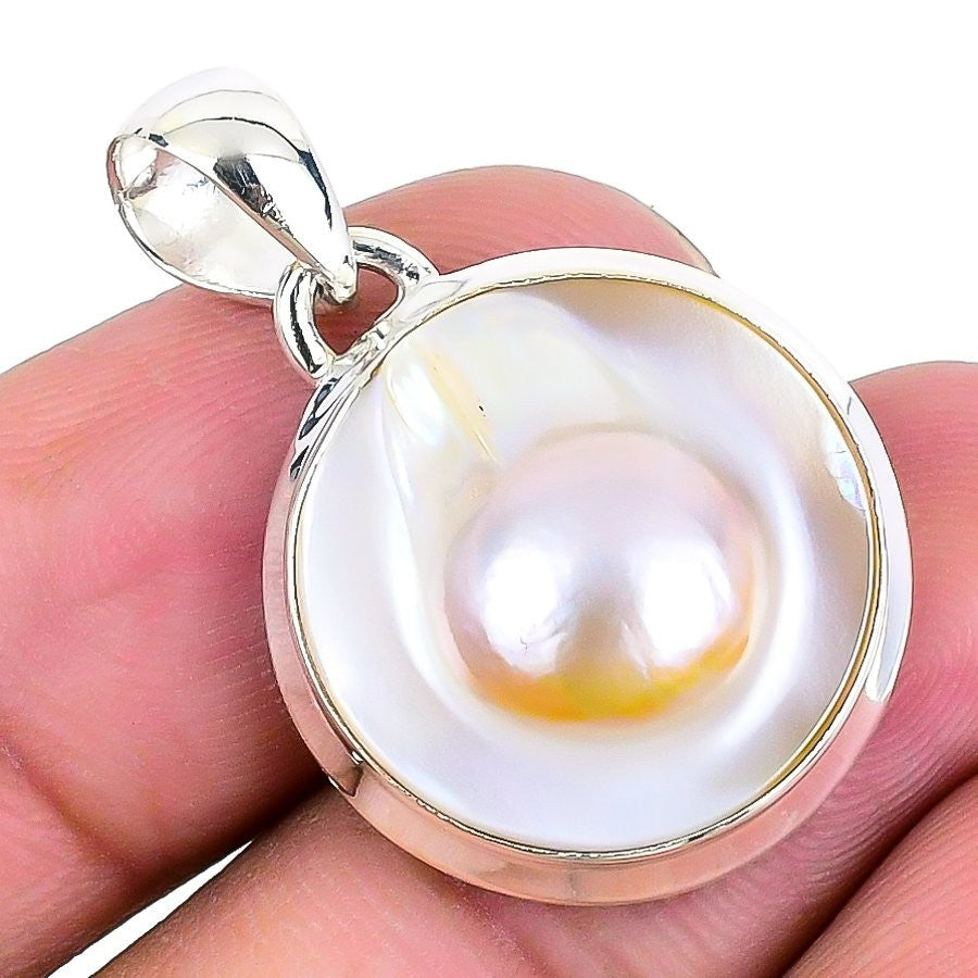 Blister Pearl Gemstone Solid Sterling Silver Wedding Channel Set Sister Pendant