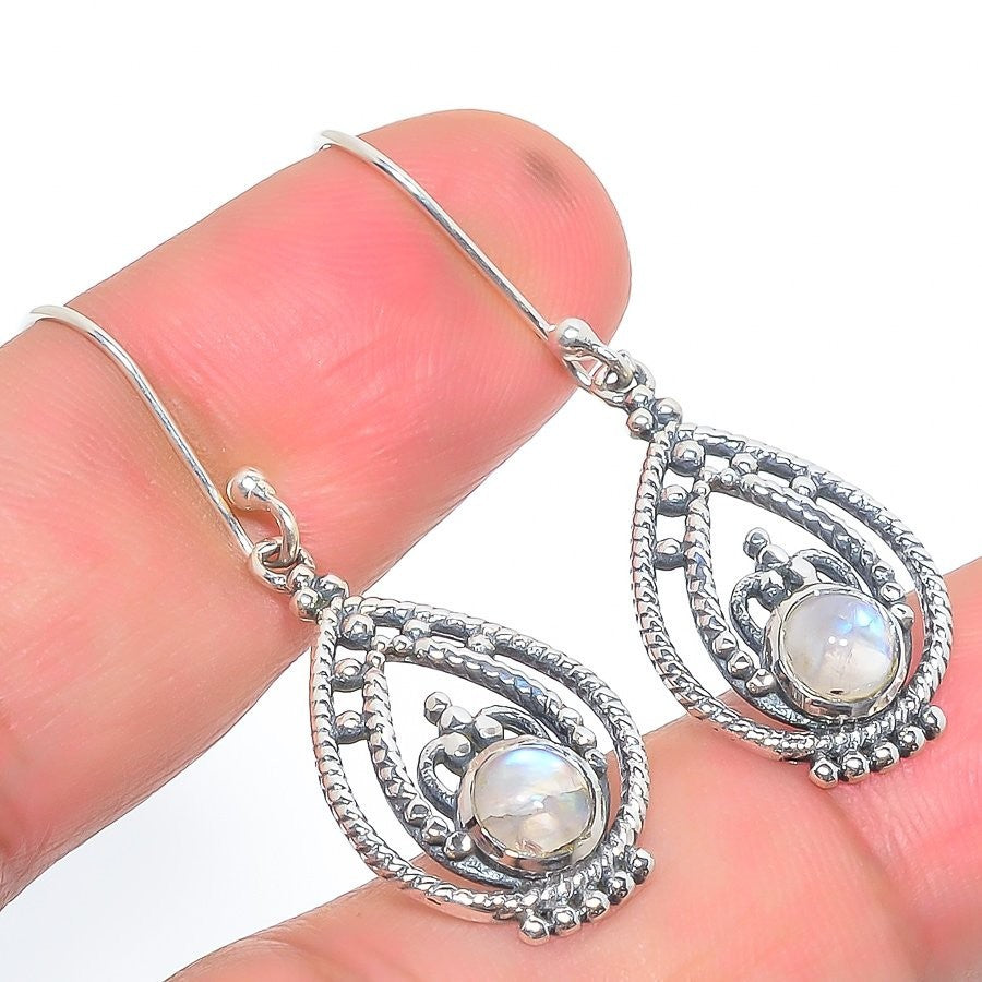 Rainbow Moonstone Stone Solid Silver Ethnic Trendy Drop Dangle Earrings Jewelry