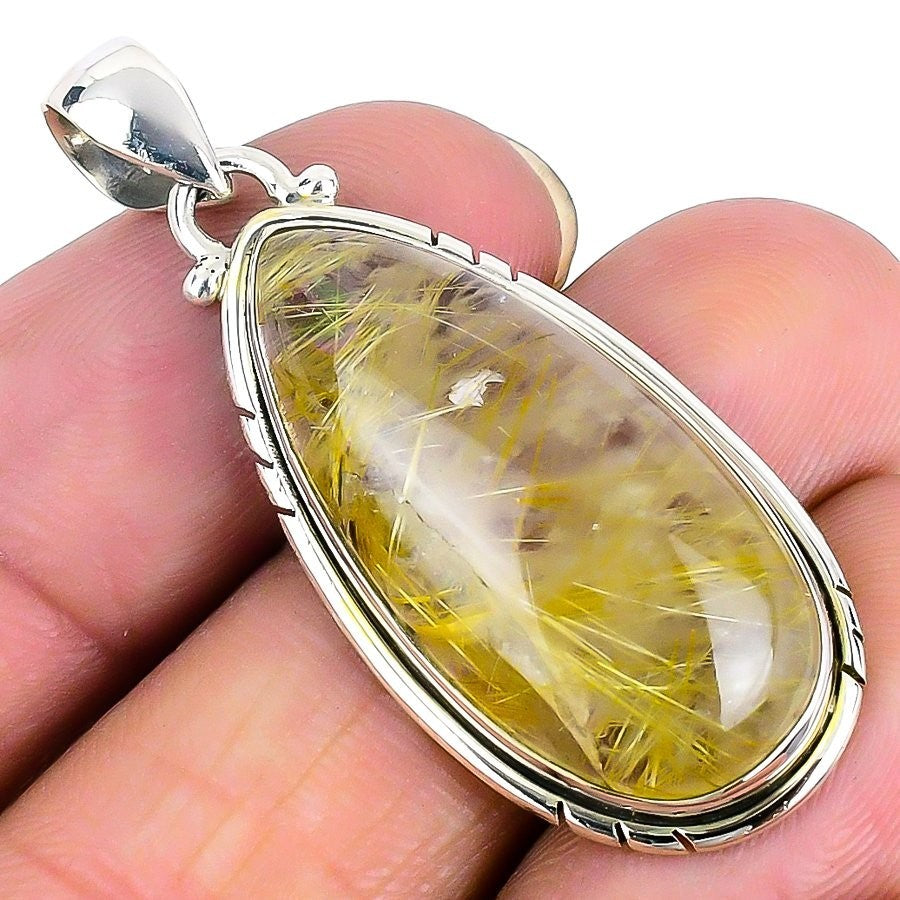 Daughters Day Sale Natural Golden Rutile Sterling Silver Bezel Sister Pendant