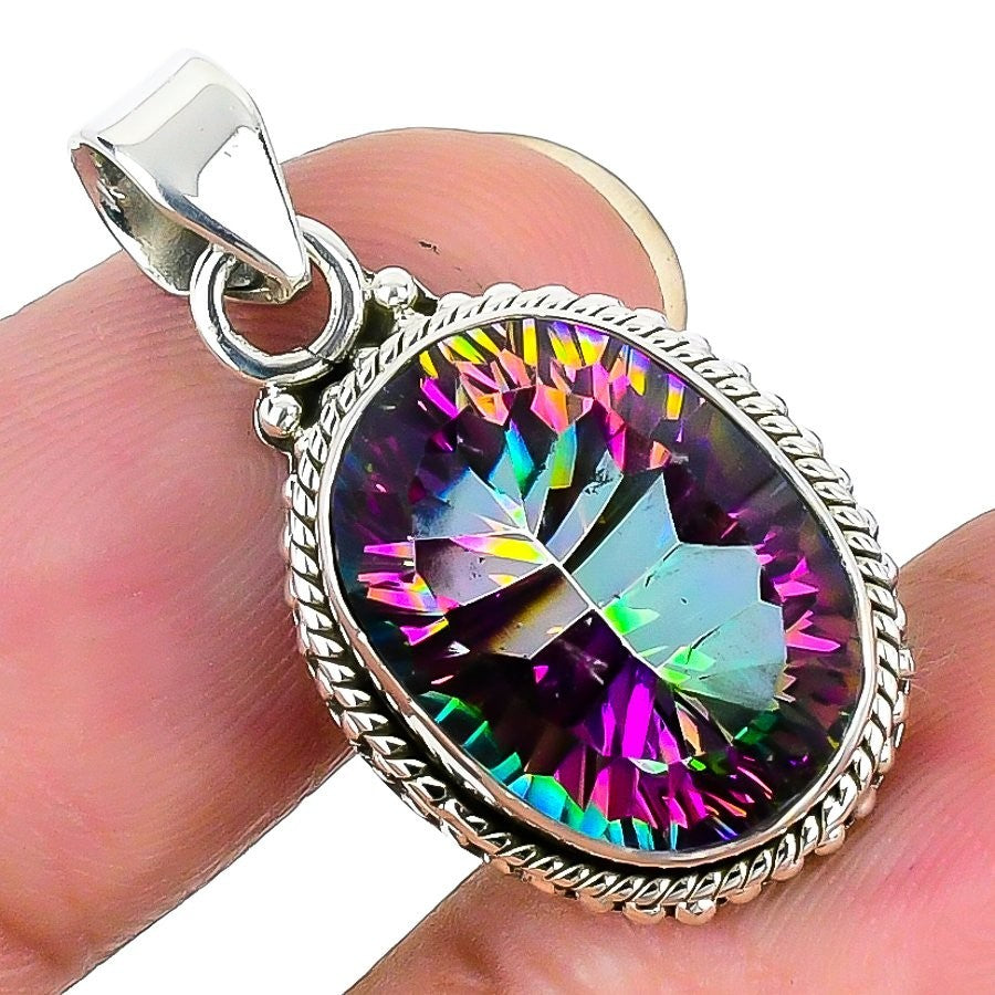 Rainbow Mystic Topaz Gemstone 925 Sterling Silver Unique Birthday Bezel Pendant