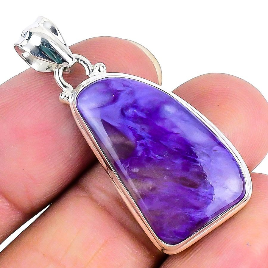 Russian Charoite Gemstone 925Ā SolidĀ Silver Bezel Wedding Engagement New Pendant