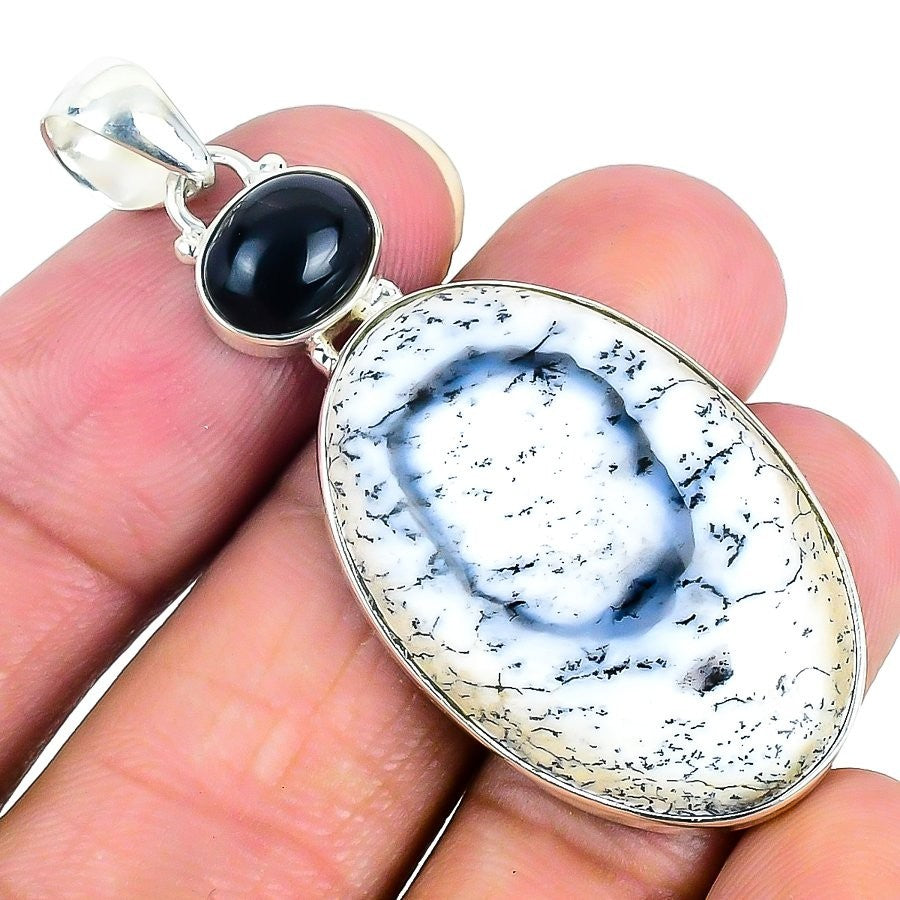 Dendrite Opal Stone Solid Sterling Silver Engagement Mother Bezel New Pendant