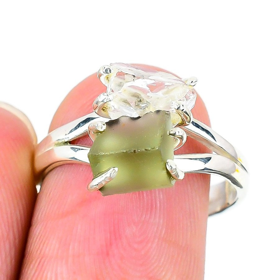 Moldavite Stone Solid Sterling Silver Statement Anniversary Handmade Ring Size 9