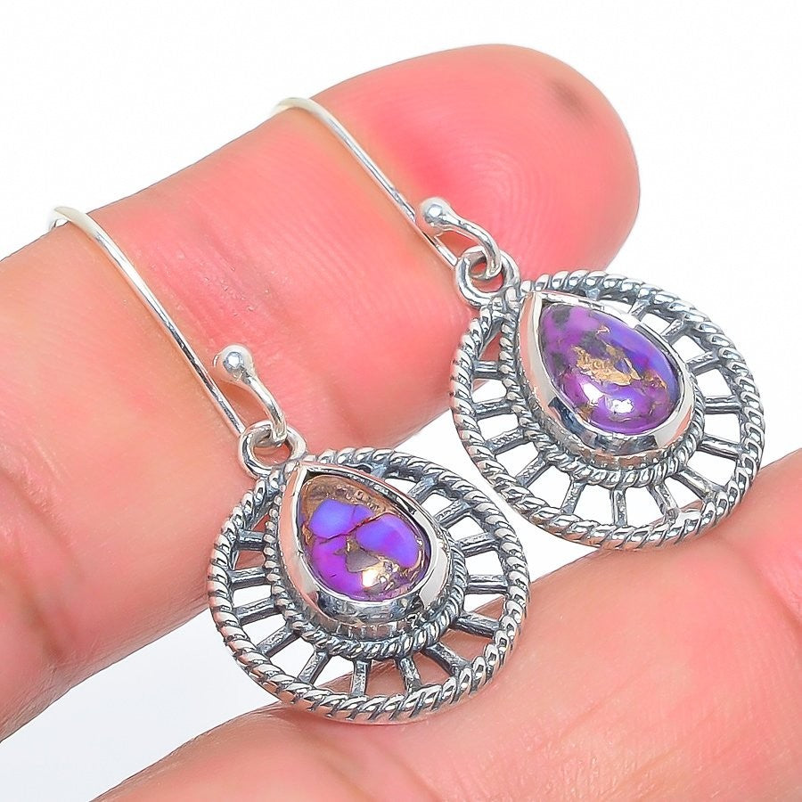 Copper Purple Turquoise Gemstone Sterling Silver Engagement Drop Dangle Earrings