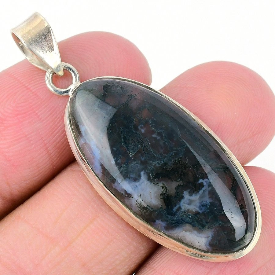 Natural Moss Agate 925 Sterling Silver Birthday Anniversary Unique New Pendant
