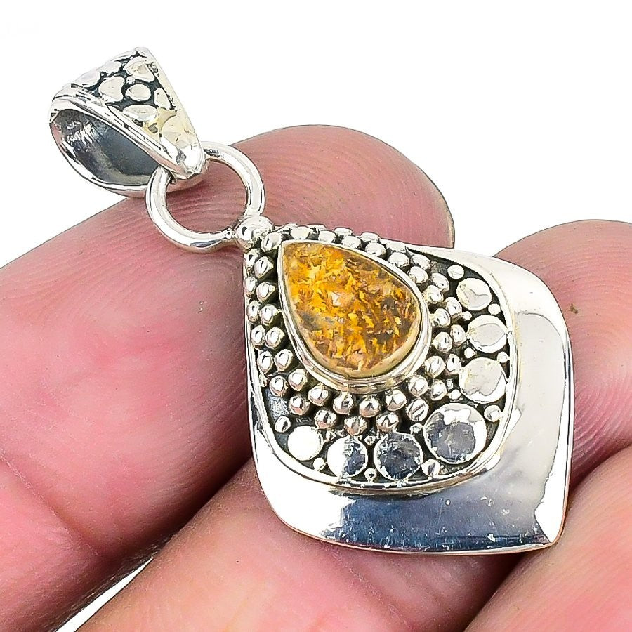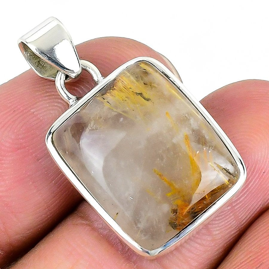 Natural Golden Rutile Daughter Artisan Unique Handcrafted New Pendant 925 Silver