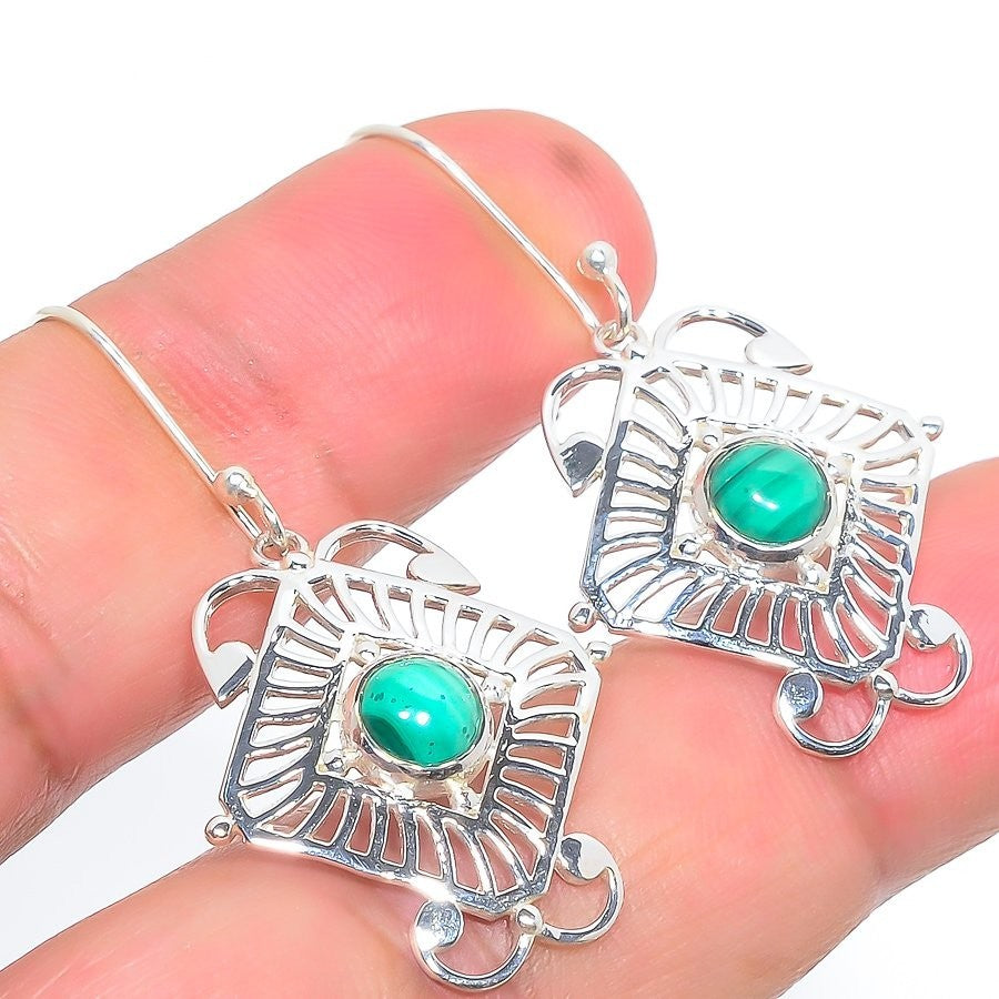 Natural Malachite Birthday Mother Dangle Drop Hook Earrings Jewelry Solid Silver