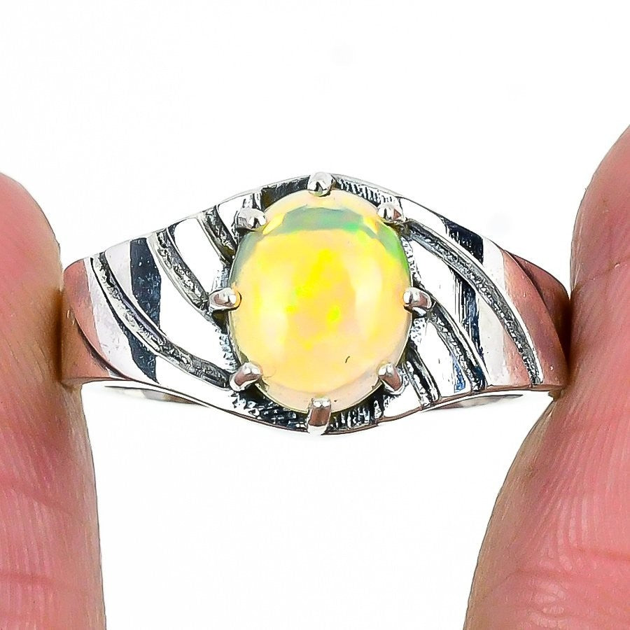 Natural Ethiopian Opal Solid Silver Statement Mother Boho Ring Jewelry Size 10