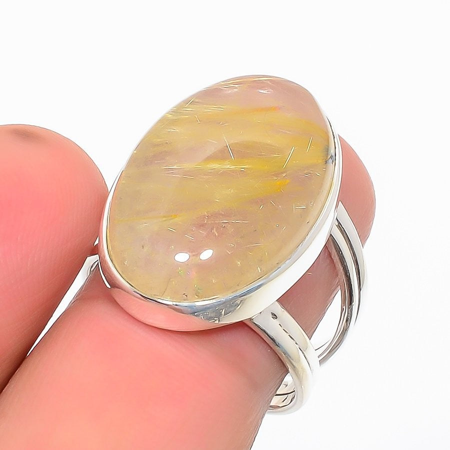 Golden Rutile Gemstone 925 Silver Mother Cluster Elegant Ring Jewelry Size 7.5