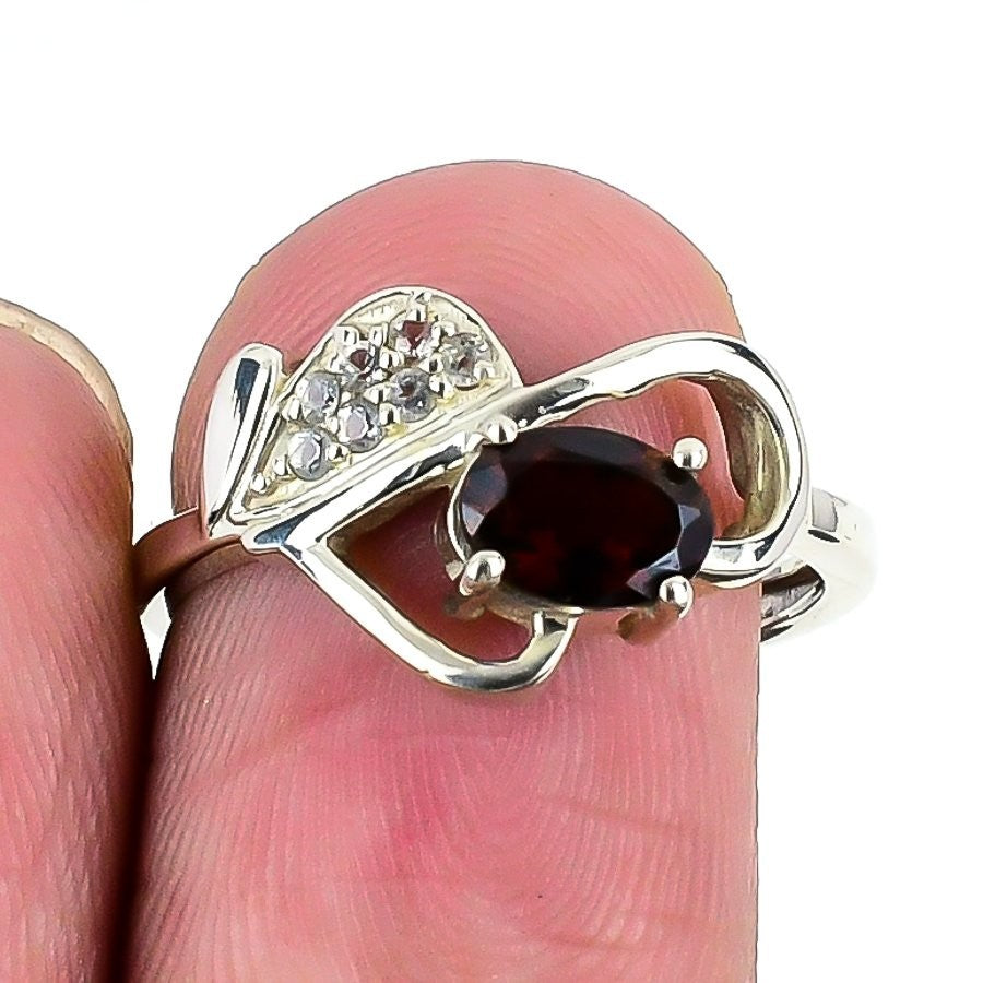 Garnet Gemstone Solid Sterling Silver Daughters Day Statement January Ring US 8