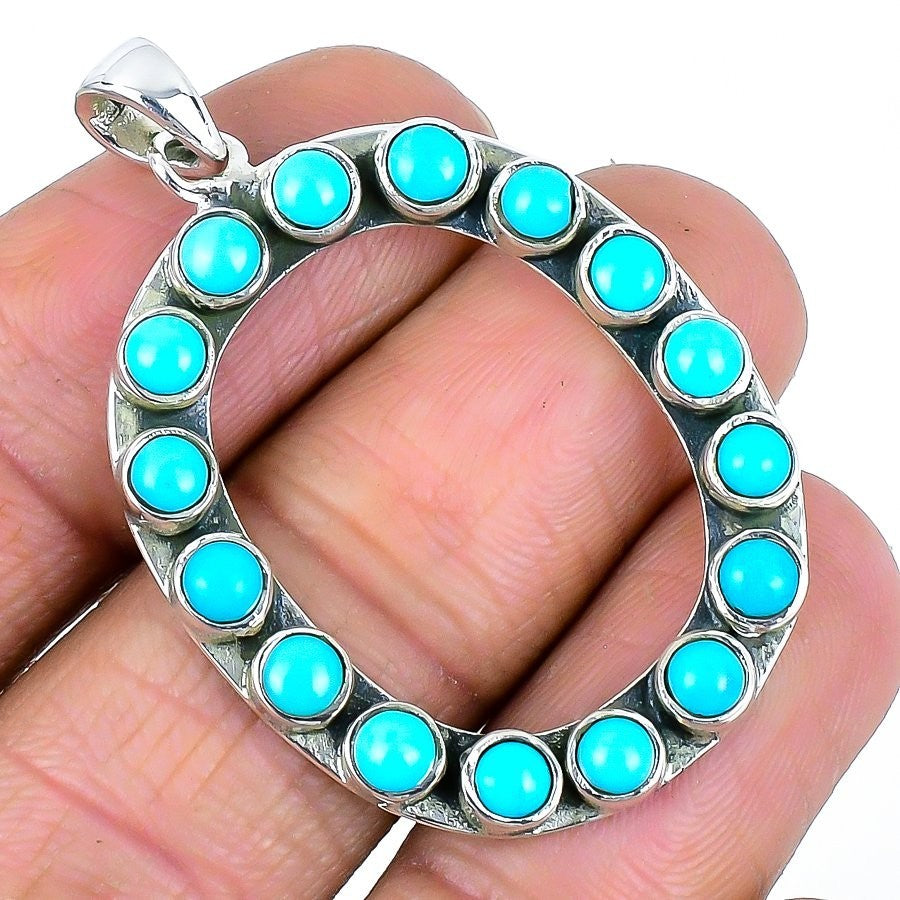 Natural Arizona Turquoise Alphabet O Solid Sterling Silver Boho Pendant Jewelry