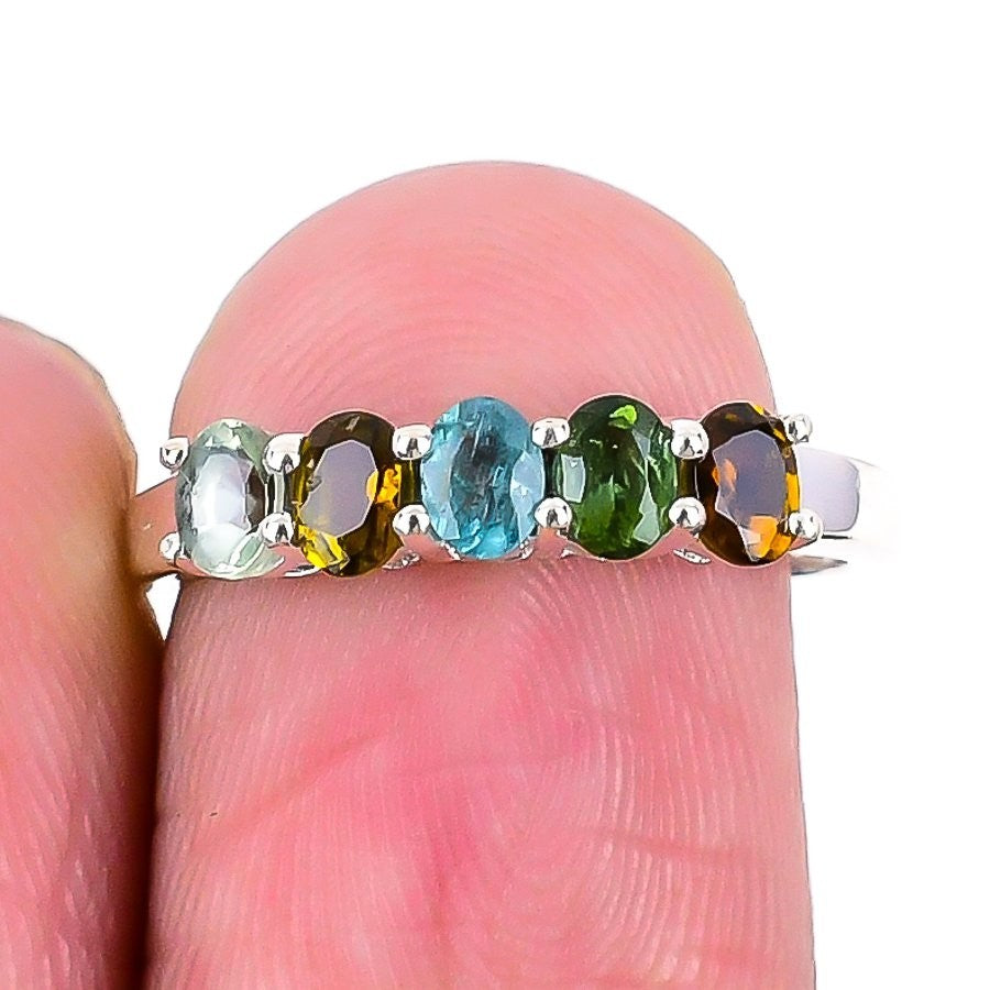 Tourmaline Stone Trendy New Statement Elegant Ring Jewelry 925Ā SolidĀ Silver US 8
