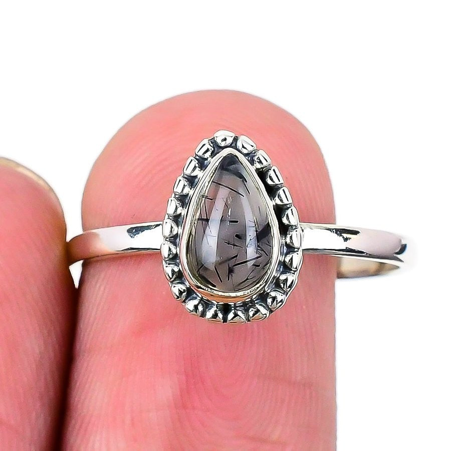 Black Rutile Gemstone Sister Statement Ring Jewelry Solid Sterling Silver US 10