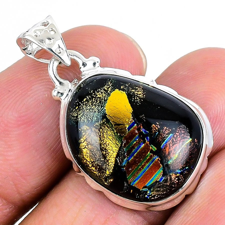 Natural Mexican Dico Glass Bezel Daughter Artisan Pendant Solid Sterling Silver