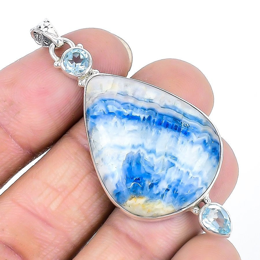 Blue Scheelite Gemstone 925 Sterling Silver Anniversary Trendy Pendant Jewelry