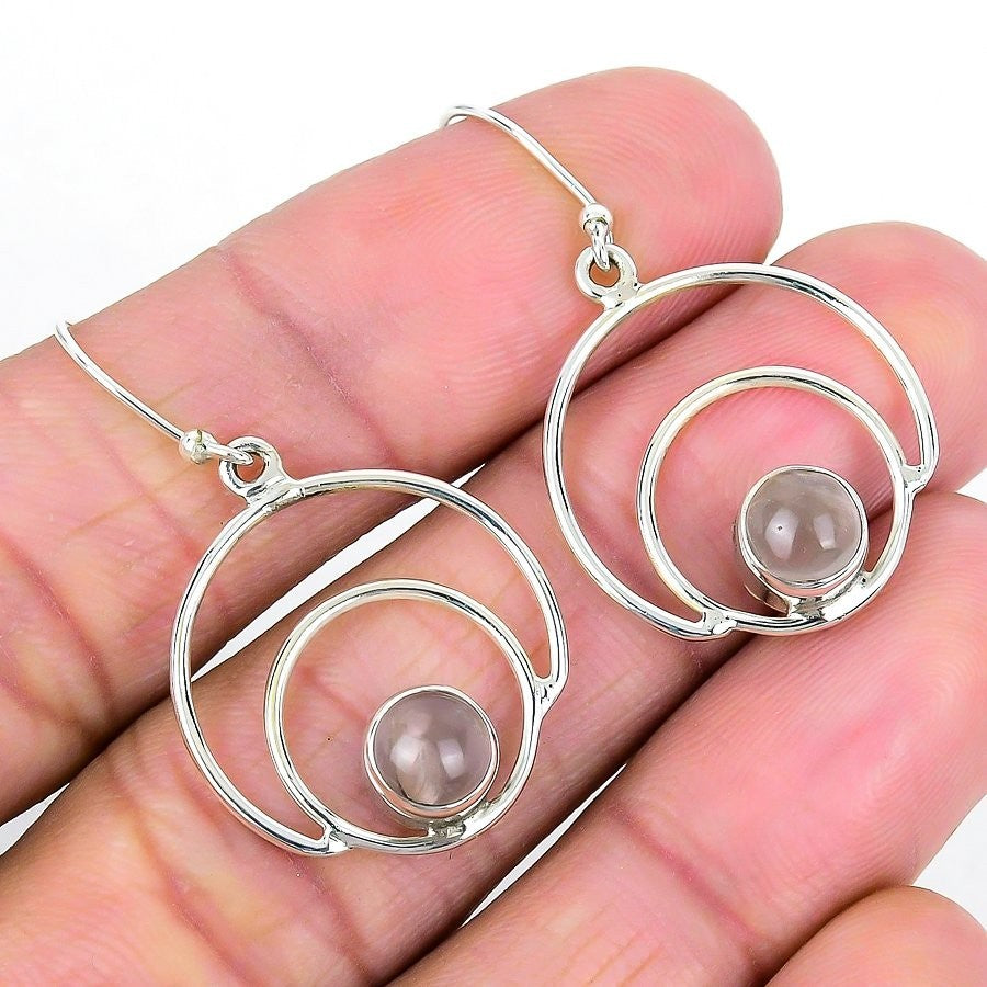 Natural Rose Quartz Hook Dangle Anniversary Earrings Jewelry 925 Sterling Silver