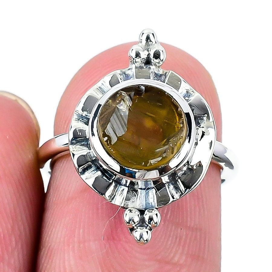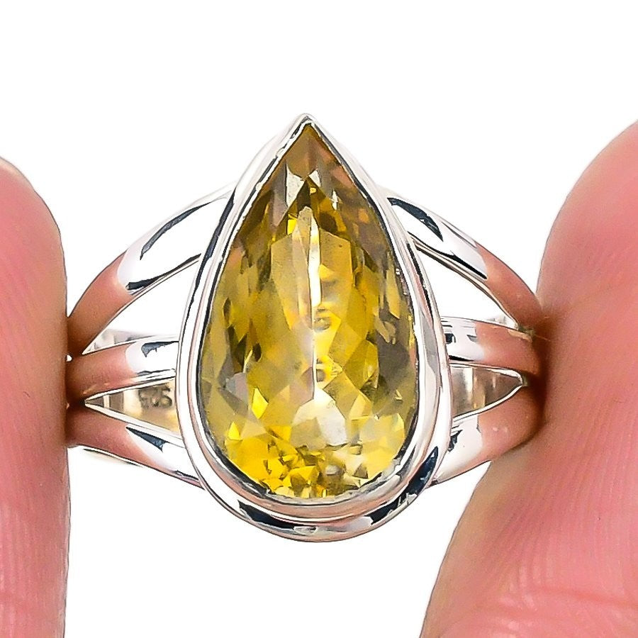 Citrine Stone Solid Silver Trendy Mother Statement Elegant Wedding Ring Size 8