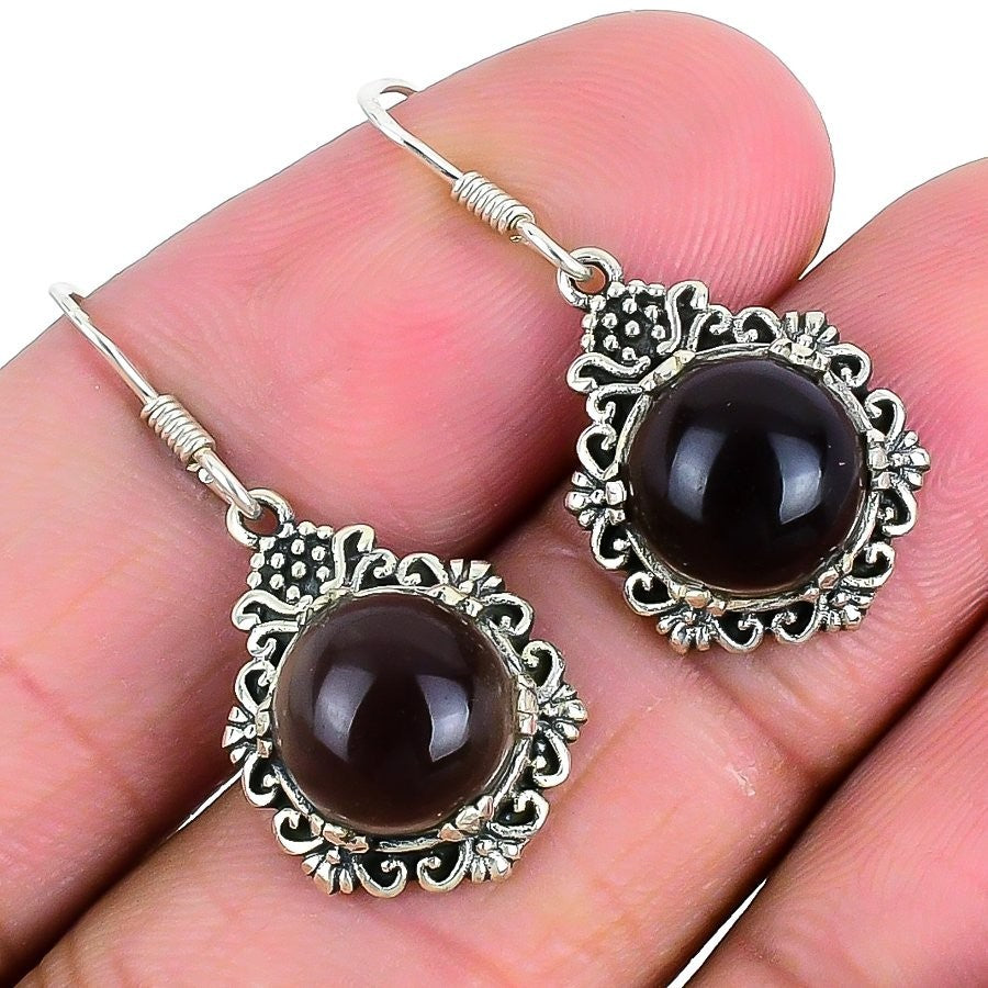 Daughters Day Deal Natural Smoky Quartz 925 Sterling Silver Boho Dangle Earrings