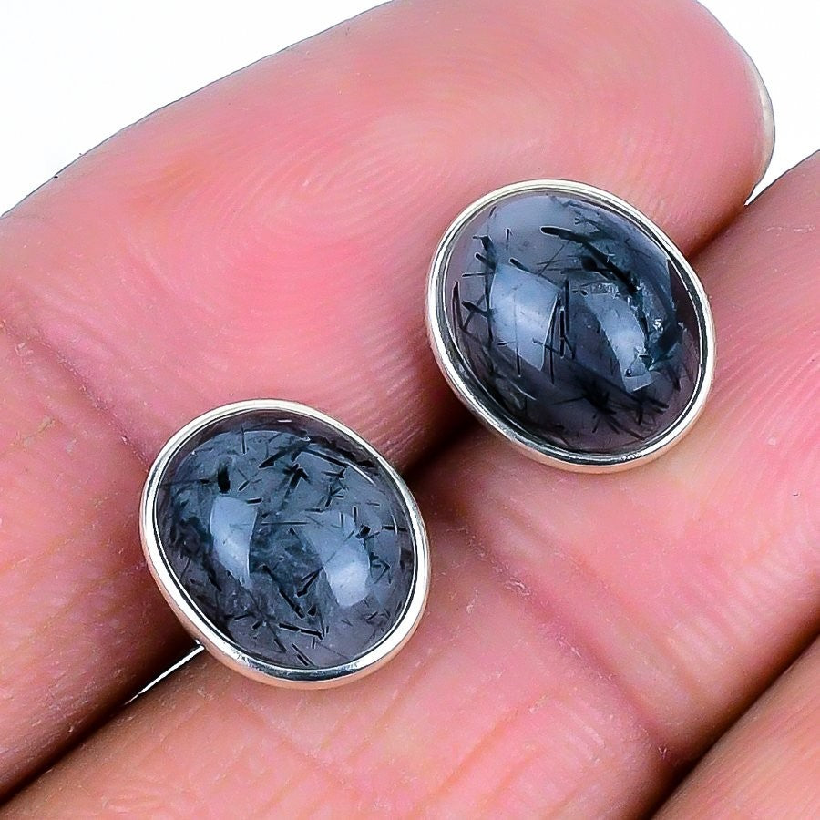 Natural Black Rutile Solid Silver Boho Stud Post Engagement New Earrings Jewelry