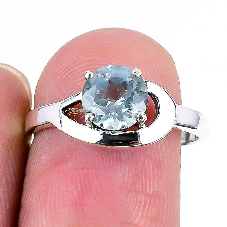 Throat Chakra Natural Blue Topaz 925 Sterling Silver Statement Ring Jewelry US 8