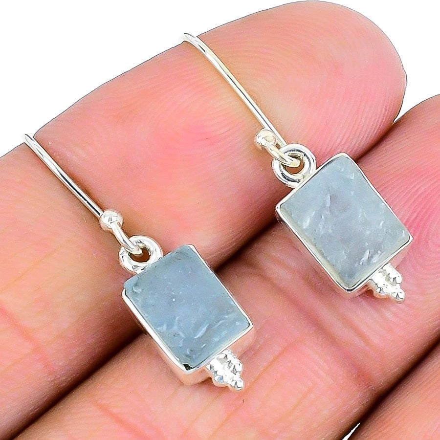 Aquamarine Drusy Stone Solid Silver Daughters Day Stud Throat Chakra Earrings