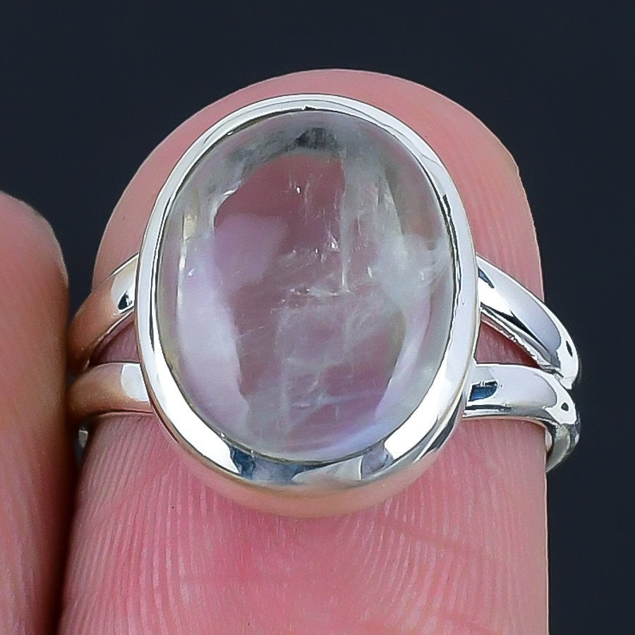 Natural Rainbow Rainbow Moonstone Solid Sterling Silver Cluster Boho Ring Size 6