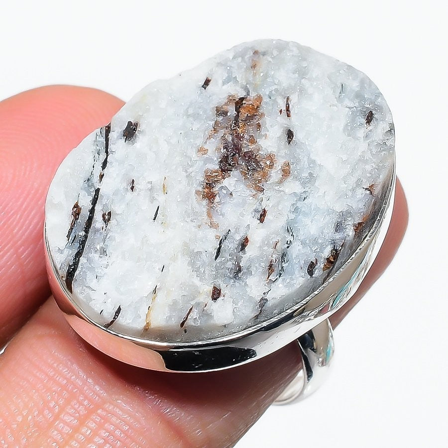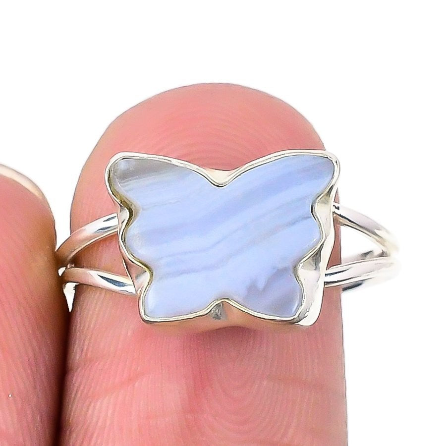 Blue Lace Agate Gemstone Solid Sterling Silver Statement Daughter Gift Ring US 8