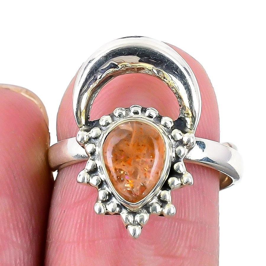 Sunstone Stone Solid Sterling Silver Daughters Day Cluster Unique Ring Jewelry