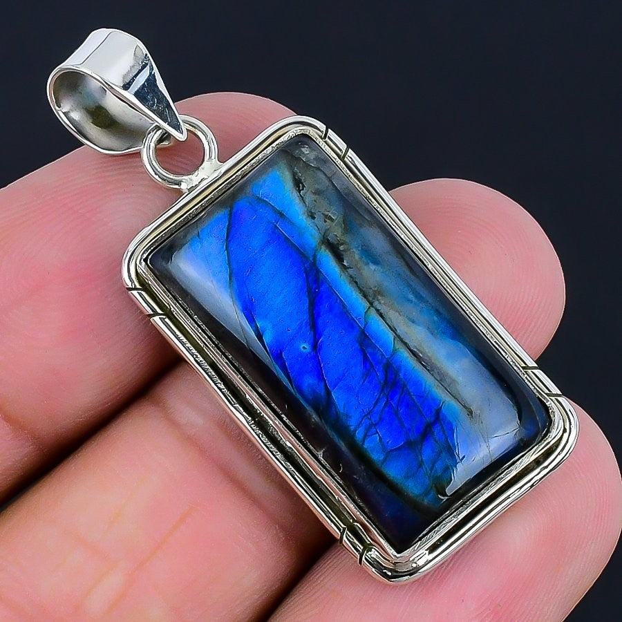Labradorite Stone Solid Silver Engagement Art Deco Handmade Wife Pendant Jewelry