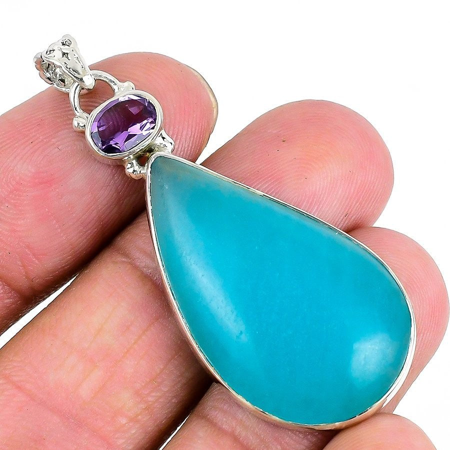 Natural Amazonite 925 Sterling Silver Daughters Day Boho Sister Pendant Jewelry