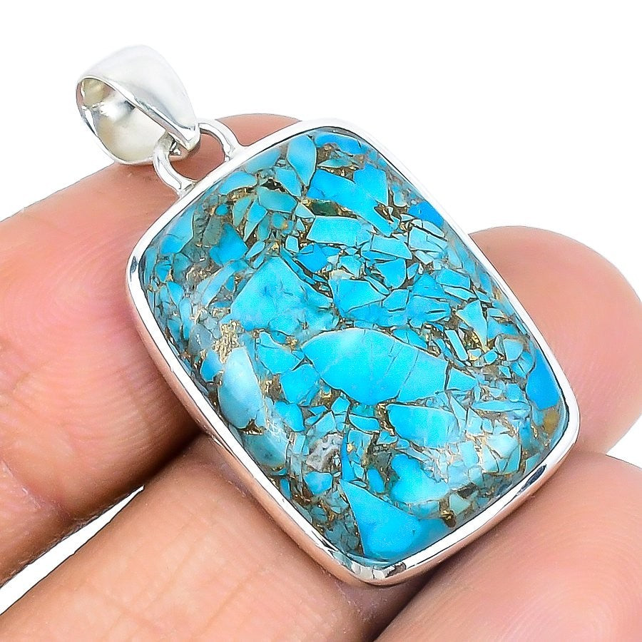 Natural Copper Blue Turquoise 925 Silver Elegant Birthday Sister Wedding Pendant